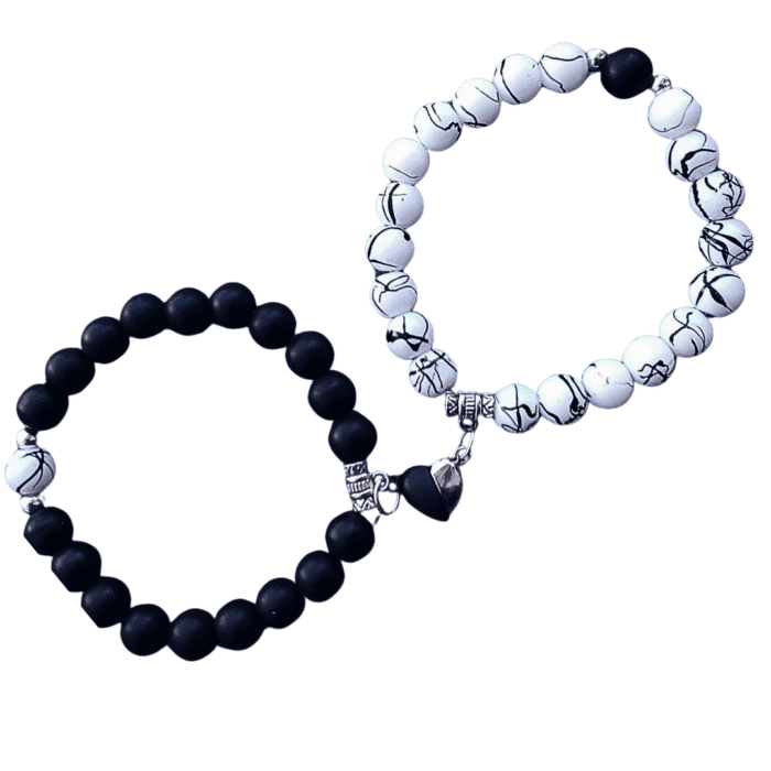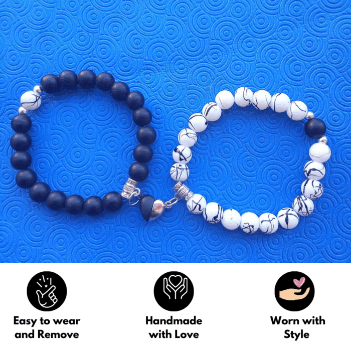 Magnetic Couple Bracelets-Fashion Jewellery-Stretchable Wrist Band Bracelet For Women Men Boys Girls- Lovable Valentine or Friendship Gift | Pack of 1 Set | Design-Magnetic Heart BW
